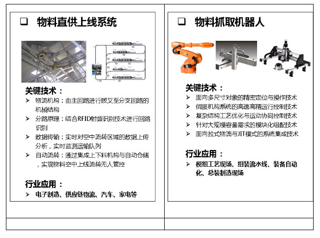 針對智能制造環(huán)境下裝備智能化需求,研發(fā)探傷與檢測機器人,物料(SMT電子物料、電極、刀輔具等)倉儲與分揀機器人,AOI檢測設備、LCR檢測設備、物料直供上線裝備,以及制造裝備的M2M智能化改造,包括CNC、EDM、CMM等裝備的智能化改造。
