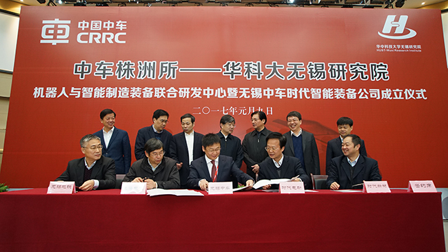 中新網(wǎng)南京1月9日電 (記者 孫權(quán))1月9日上午,由中車株洲所與華中科大無(wú)錫研究院科研團(tuán)隊(duì)合作創(chuàng)立的無(wú)錫中車時(shí)代智能裝備有限公司在無(wú)錫市惠山經(jīng)濟(jì)開發(fā)區(qū)成立。當(dāng)天,中車株洲所——華中科技大學(xué)無(wú)錫研究院機(jī)器人與智能制造裝備聯(lián)合研發(fā)中心也同期揭牌“落地”此間。